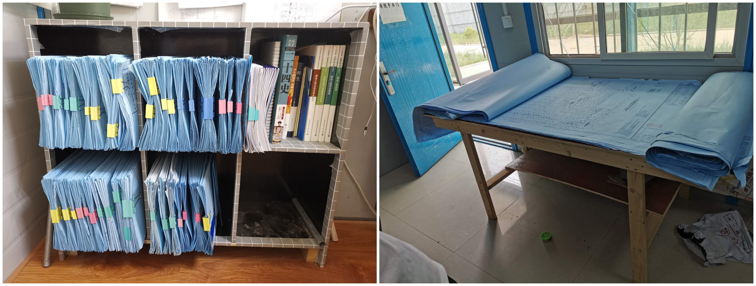 利用廢舊模板制作圖紙存放柜、看圖桌椅